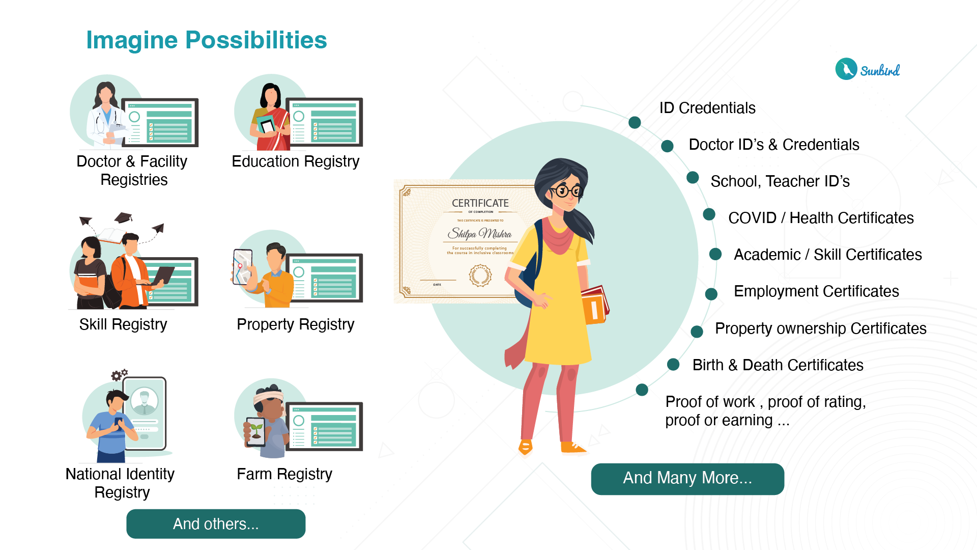 Sunbird Registry and Credentials provides a secure and scalable way to manage digital identities and credentials. Some of the use cases for Sunbird Registry and Credentials include: